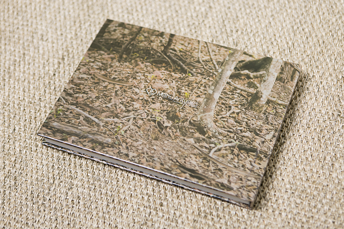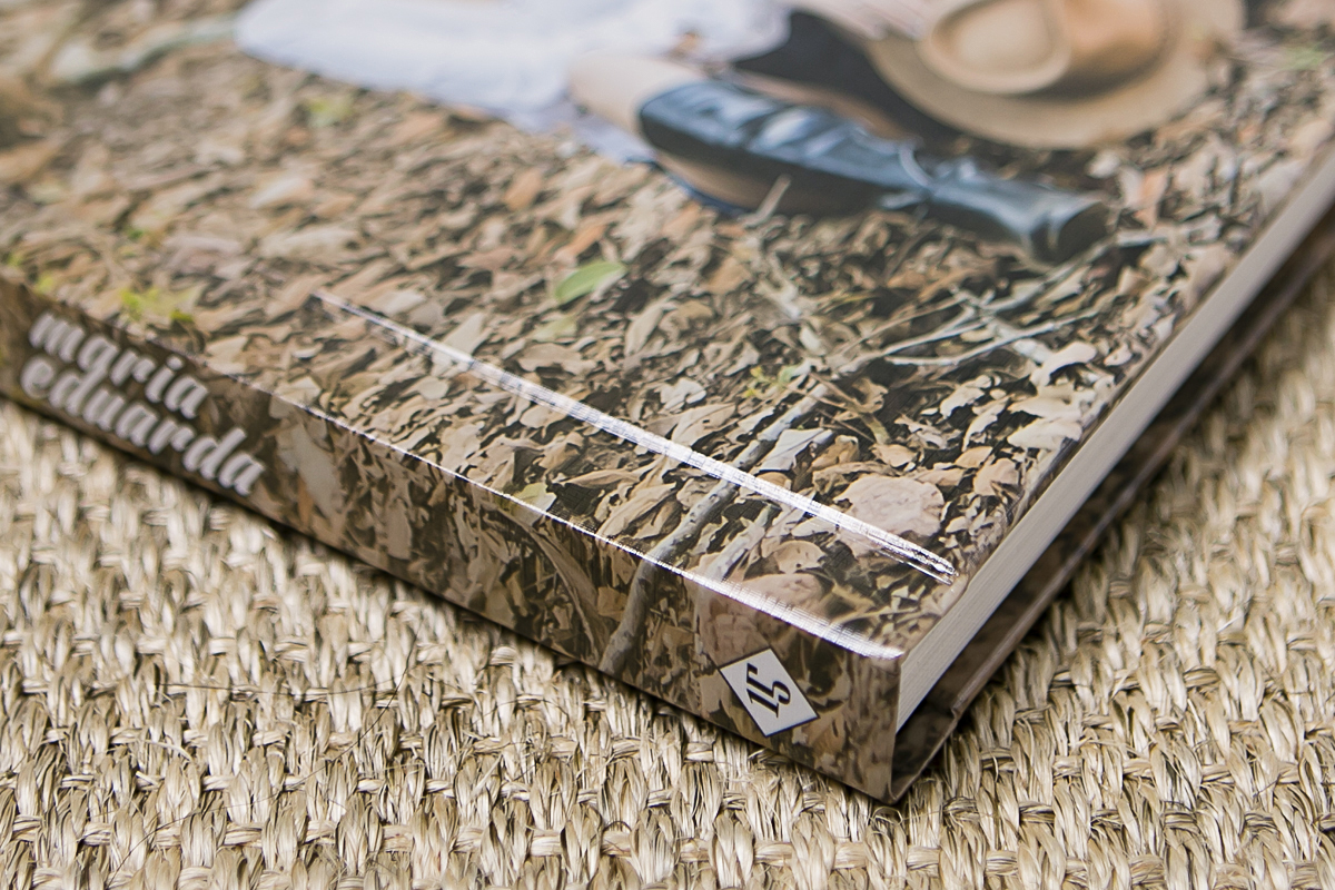 Álbum modelo Livro, diagramado no formato 23 x 31 cm e com 34 páginas.